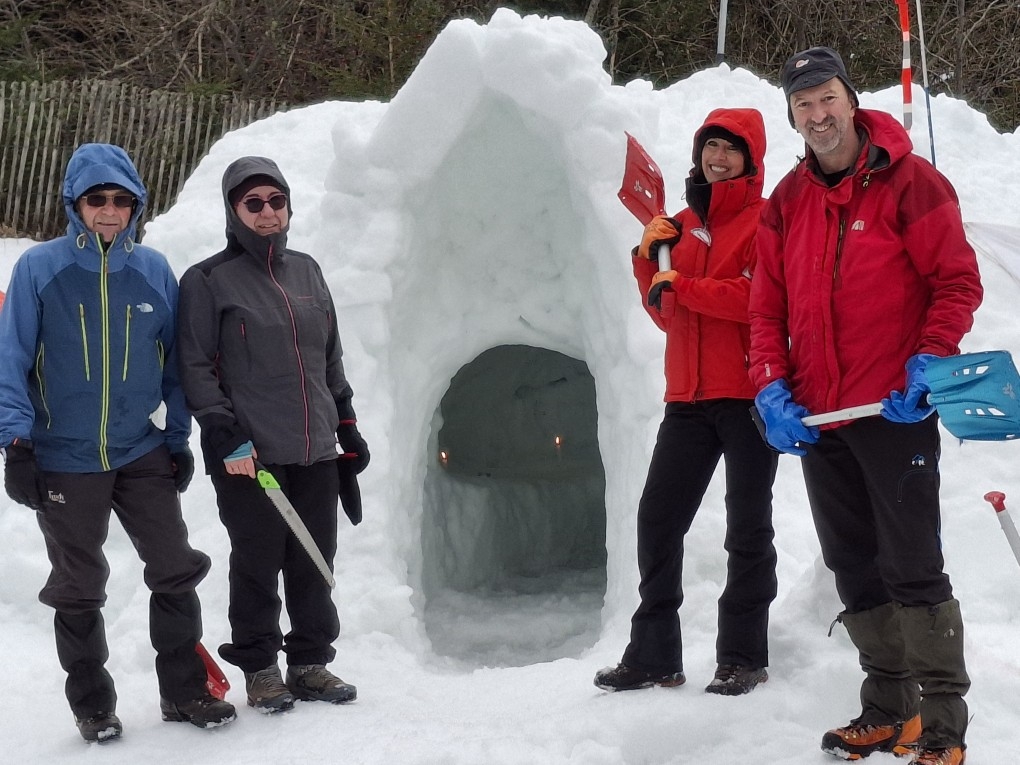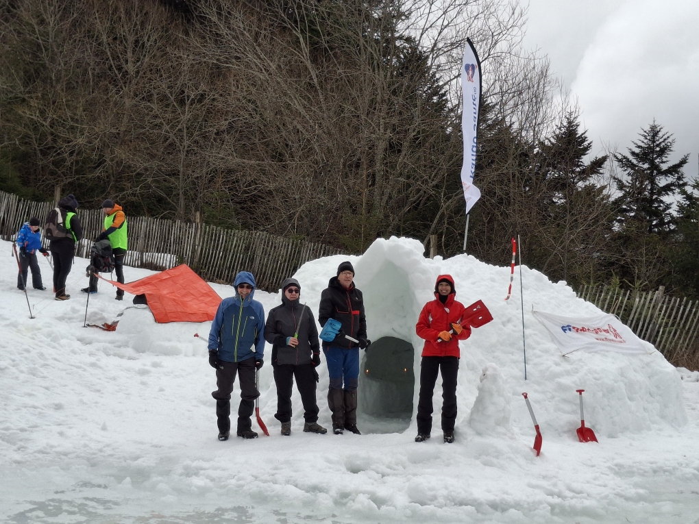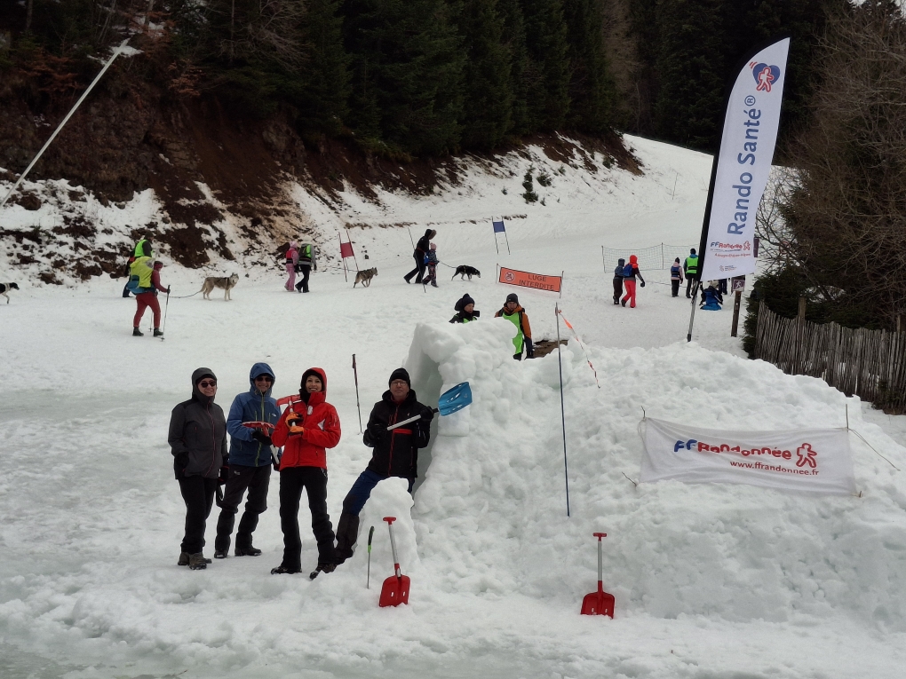 Le rando club Les Pas de la Cère s’est mobilisé avec six animateurs présents, Franck BERSEGOL, Bernard COURTLLE, Isabelle FAILLES, Gilette GUIDET, Pascal JAUBART et Bernard PROULT, pour animer un atelier « Abris de fortune », avec tout le matériel nécessaire (pelles à neige, sondes, scies, ets.)