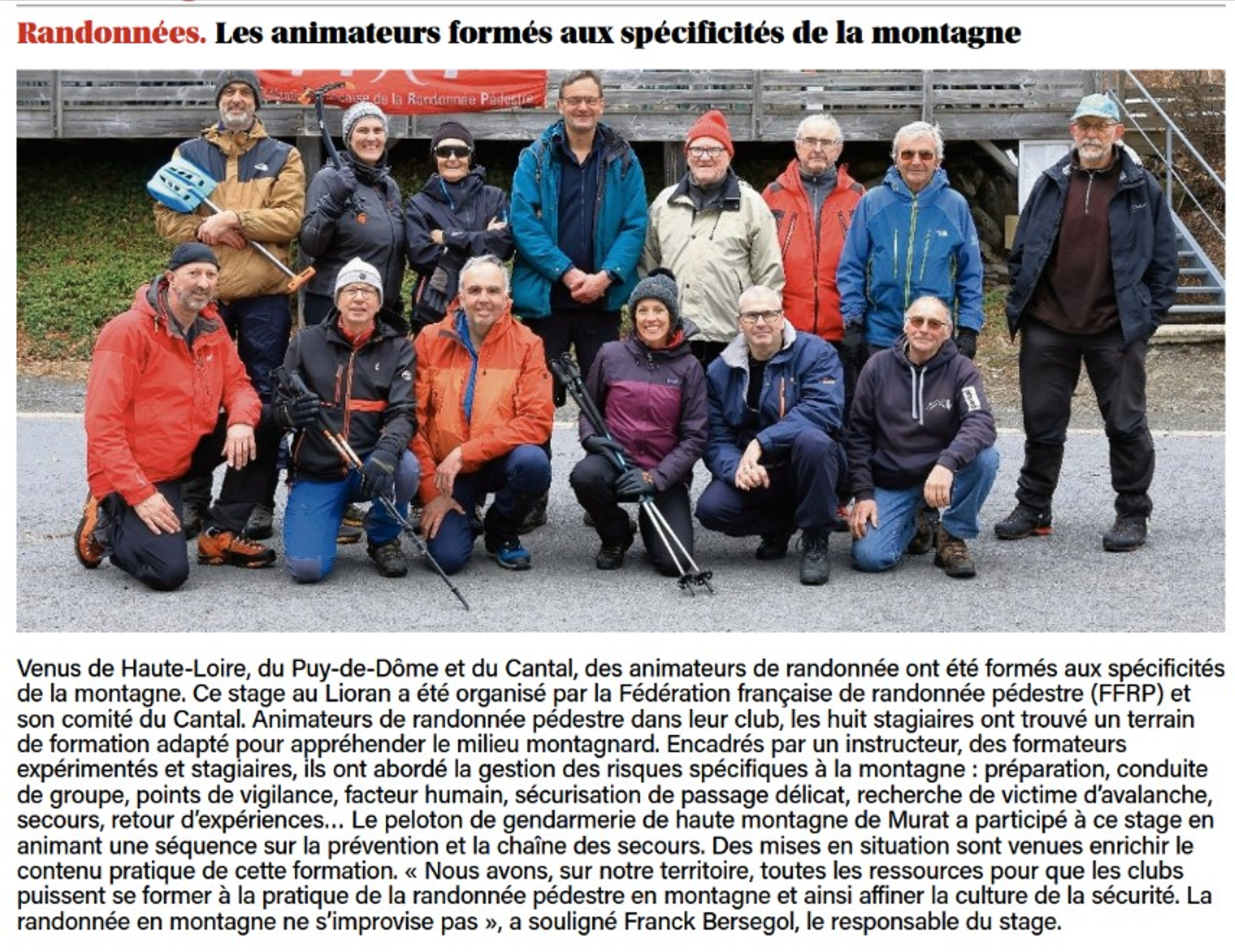 Un stage de la FFRP organisé au Lioran , a permis à des animateurs de randonnées , venus de Haute-Loire, du Puy de Dôme et du Cantal , de se former aux spécificités de la Montagne